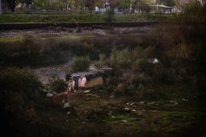 Un ruco junto al río Mapocho en Renca. Estos son los territorios por donde despliega su actividad Ojos de la Calle, liderada por Mewi Soto. AGENCIA BLACKOUT