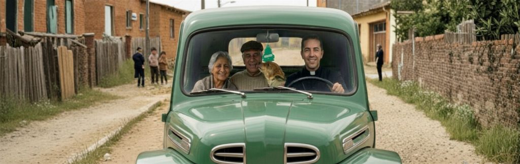 Un pueblo polvoriento de Chile central, una camioneta verde, un matrimonio de personas mayores, un maestro con mameluco y escalera, un equipo infantil de baby fútbol y un lote de perros. Todos se van subiendo sucesivamente al vehículo; todos caben, todos pueden llegar a donde van gracias a un simple gesto de solidaridad, empatía y confianza.