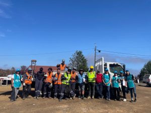 Parte de la actividad de entrega de kits en Punta de Parra, región del Biobío, protagonizada por trabajadores de Abastible y del Hogar de Cristo.