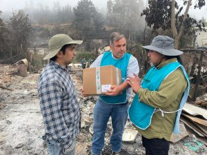 Víctor Jerez y Daniel Fernández del Hogar de Cristo en la región del Biobío están desplegados en Penco-Lirquén entregando ayuda concreta, apoyo y anticipándose a la llegada de los kits de remoción de escombros.