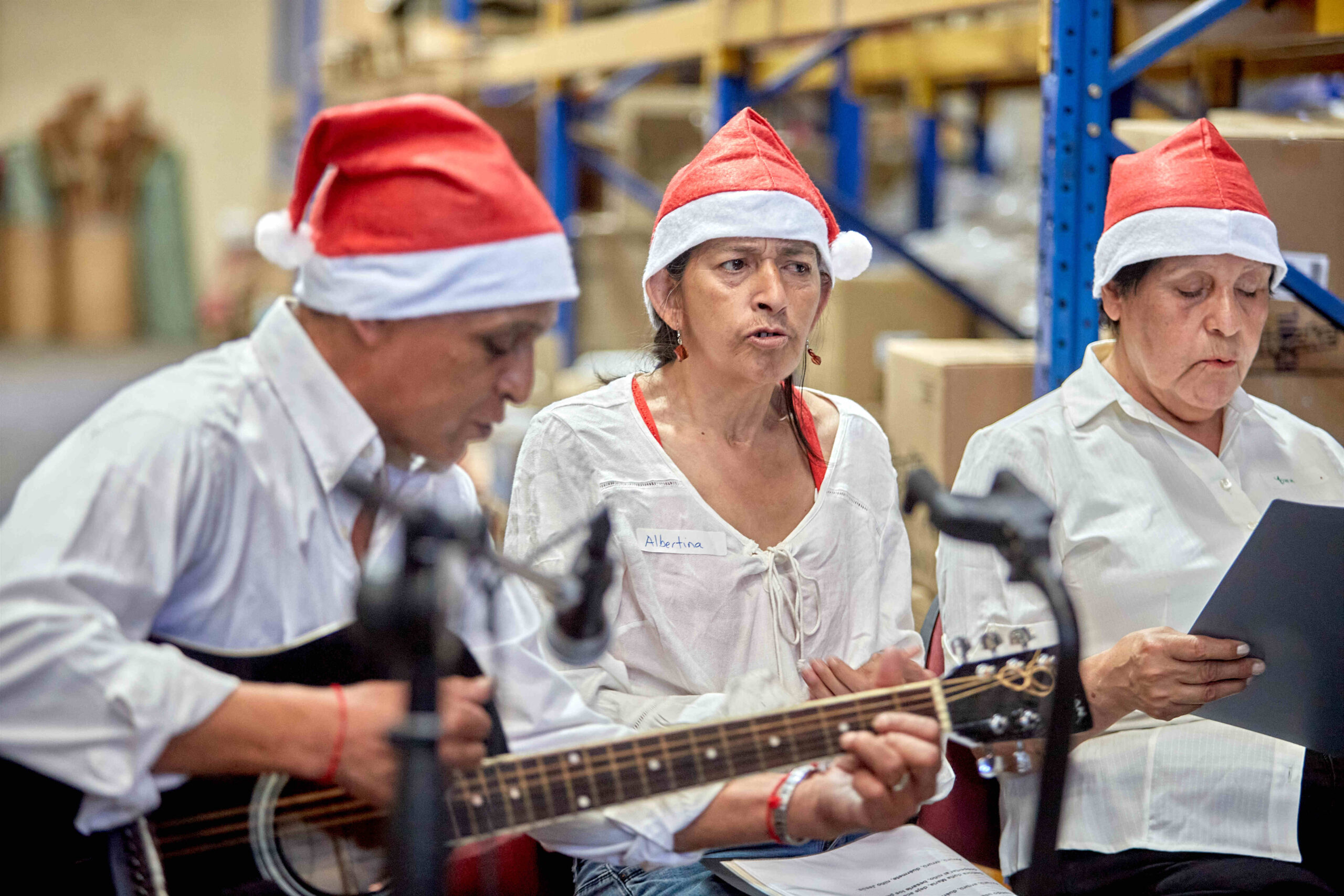 Su organizador, Raúl Panguilef (47), auxiliar de aseo y jardinero de la casa matriz del Hogar de Cristo, explica: “Este coro es parte de una obra de Navidad, con todo el relato tomado del libro de San Lucas. Es una actividad que se concentra en cuarenta minutos pero que quisimos resumir para esta actividad y el resultado ha sido emocionante, es emocionante ver cómo todos se involucran, por ejemplo, Albertina no sabe leer pero se esforzó como nunca para aprender de memoria la letra y cantar para ustedes hoy día, ¡eso es Navidad! El regalarse a otros como ella lo hizo”.