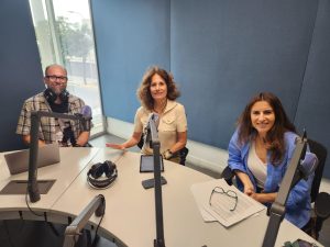Ana Luisa Joaunne en el estudio de radio Cooperativa junto a Ximena Torres Cautivo y Jorge Lira, quienes la entrevistaron sobre Naciste Tú, un programa de rehabilitación para recién nacidos con consumo de Corporación Esperanza.