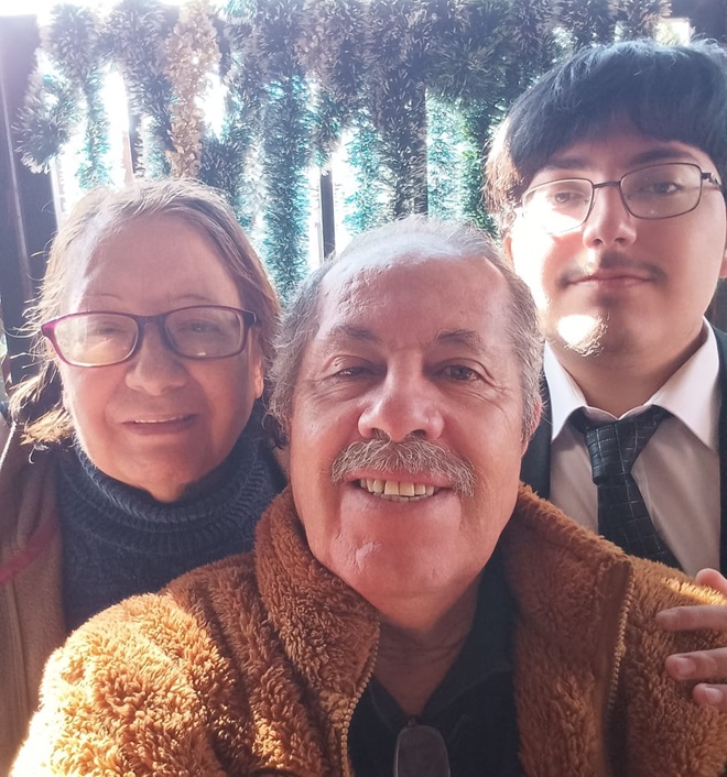 Franco junto a sus abuelos, quienes movieron cielo, mar y tierra para que no dejara de estudiar.